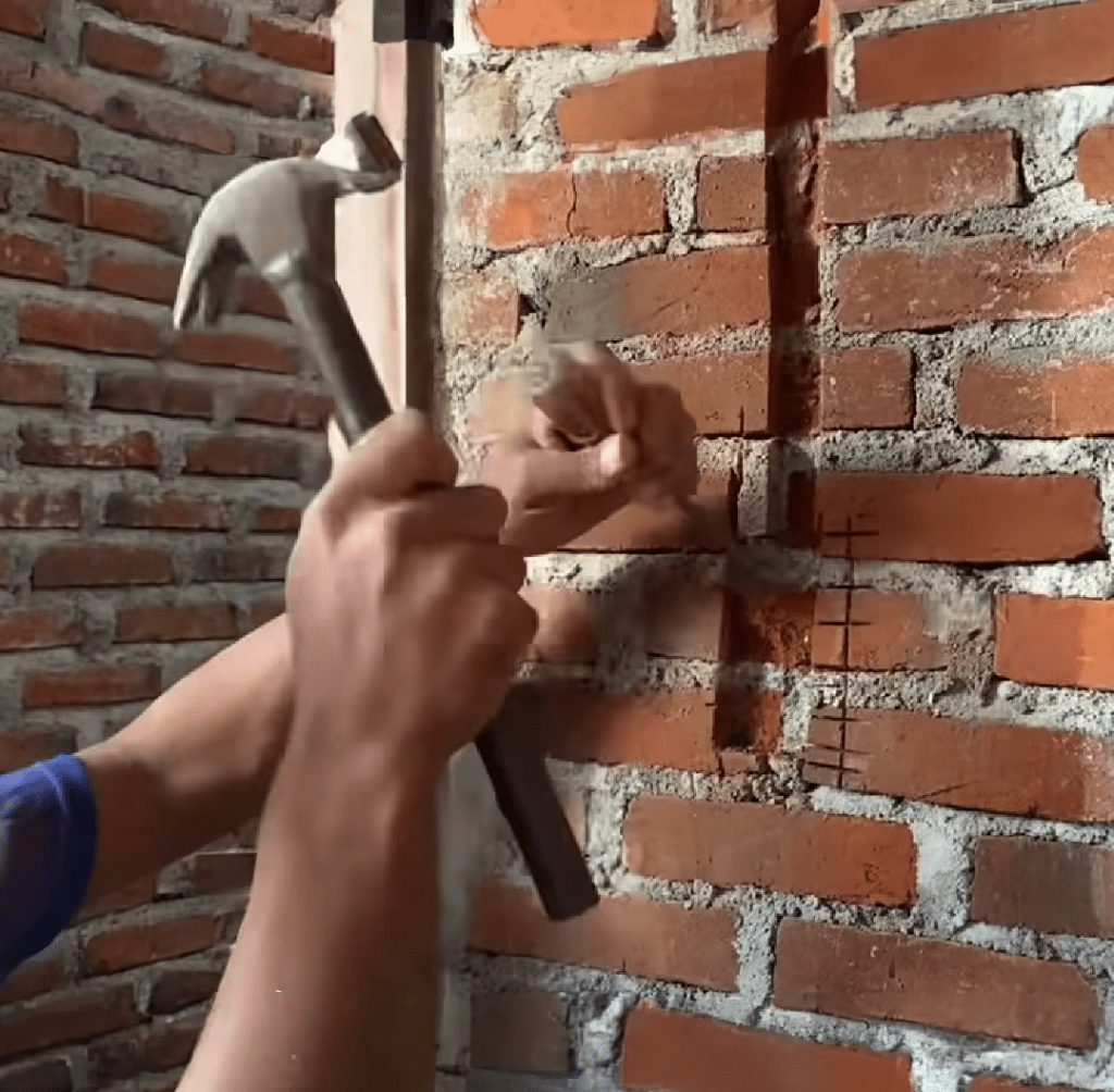 Setelah jalur ditandai, langkah selanjutnya adalah membobok tembok bata untuk menciptakan ruang yang diperlukan untuk pipa kabel dan kotak listrik. Gunakan gerinda untuk memotong tembok bata sesuai dengan jalur yang ditandai, lalu gunakan pahat tangan untuk membobok tembok dengan kedalaman sekitar 2-3 cm. Pastikan Anda bekerja dengan hati-hati agar tembok bata tidak retak atau rusak. - Pemasangan Pipa Kabel dan Kotak Listrik