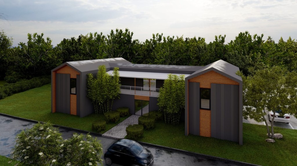 Deskripsi : Bangunan 2 lt, lantai 1 untuk kantor dan lantai 2 untuk guest house, struktur dari kontainer 40ft